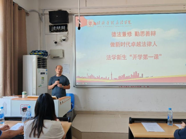 罗时贵教授对法科新生考入我校法学专业表示欢迎和祝福,对法科新生寄语愿景和希望:一是要有理想信念,只要坚定理想信念,就能初心如磐、使命在肩、逐光前行;二是要珍惜师生友谊,友谊会教导同学从“个人中心”转向“社群中心”,提升生活质量和升华生活的意义;三是要热爱学习,学习是一场艰难的跋涉过程,需要勤奋和努力。学习也是一种态度,能够迎接各种苦难和挑战。学习更是一场旅行,在寻找知识和智慧的旅行中,发现更多的自己和世界;四是要心中有爱,只要心中有爱,无论身处何方,都不会感到飘忽不定,哪里都是心的港湾;五是要崇尚和弘扬中华文明与文化。文明是立国之本,文化是立国之邦。要成为一个有文化品味的人、有文化内涵的人、有文化修养的人,才能独善其身、达济天下。