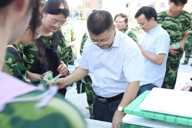 领导关怀,似秋阳之暖;真挚鼓励,如春风化雨。慰问现场,学院领导们与教官、参训同学亲切交流,代表学院向精心筹备军训工作、指导训练的教官表示感谢,对在炎炎夏日中坚持参训的同学们致以亲切慰问与热情鼓舞。