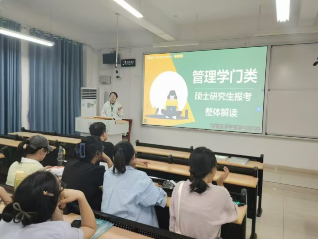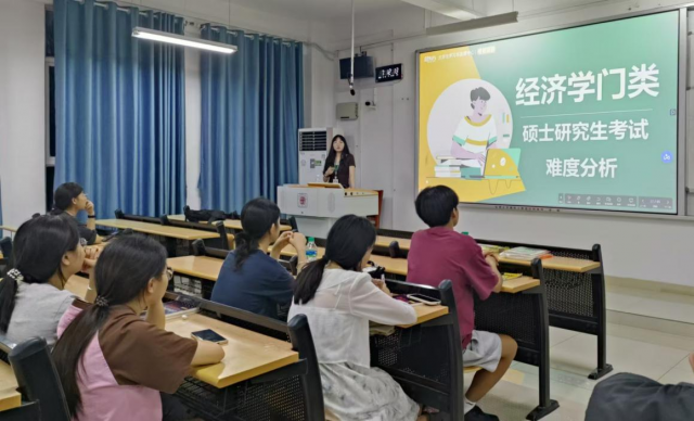 为助力我院学生明确考研方向,规划考研之路,我院于秋季开学初,举办了一系列专场考研讲座,分别针对国际经济与贸易、财务管理、法学等专业。三场讲座于9月9日至12日的晚19点,逸夫楼Y210陆续开展。讲座特邀新东方大学生学习与发展中心周燕琴,王婕和涂文慧三位专家讲师作为主讲,现场吸引了众多有考研意向的同学前来参加。