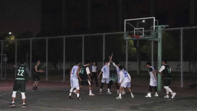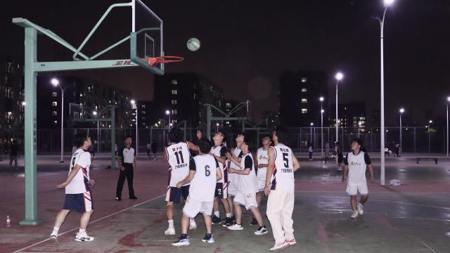 比赛前双方队员热身,上场,随着一声哨响,比赛一触即发。双方队员驰骋于球场之上,积极防守、进攻,全力以赴。即使因为夜晚的到来,天气变得寒冷,但也丝毫没有影响双方队员的激情,反而愈战愈勇。双方比拼激烈,篮球在两队队员手中不断交替,带球、运球、投篮等一系列动作规范且流畅。哨声响起,中场休息,啦啦队的上场为两队队员加油打气。在接下来的比赛中现场气氛更为热烈,也伴随着哨声结束,比赛落下帷幕。