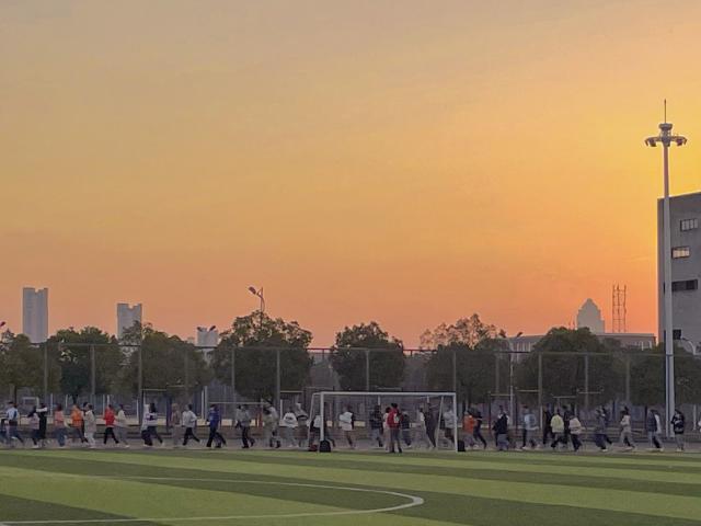 旭日初升,万物复苏之际,同学们带着青春的活力与朝气来到西区操场井然有序地集合。在各班班干部清点完人数后,同学们在学生会相关负责人的带领下正式开始晨跑。红色的跑道上,学子们热情洋溢,朝气蓬勃,步履稳健,整齐划一。坚定有力的步伐,自信昂扬的笑容,仿佛在诉说着经管学子对未来的无限激情。口号声、喘息声、步伐声,为冬季清晨寒冷的校园增添了一份温暖。晨跑结束后,同学们回到原地,各班班干部再次清点人数。
