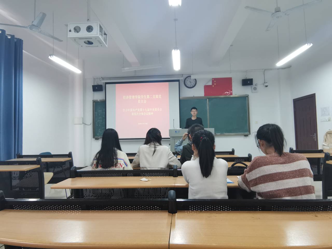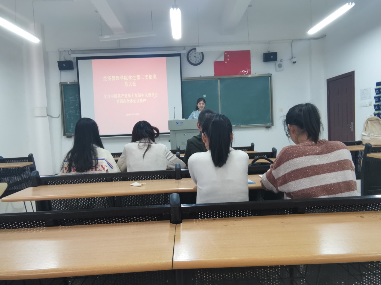 为了进一步推进“不忘初心、牢记使命”主题教育,11月14日下午经济管理学院学生第二党支部在逸夫楼Y411召开了党员全体大会,学习传达党的十九届四中全会精神。
