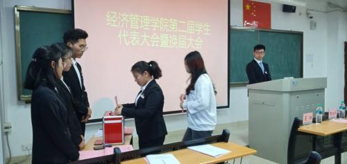 为进一步加强经济管理学院团委学生会组织建设,依据章程有序推进学生参与学院民主管理,深入落实《中华全国学生联合会章程》的文件精神,为学院更好地选举出新一届团委学生会的骨干力量。11月19日下午3时,经济管理学院在逸夫楼510召开经济管理学院第二届学生代表大会暨换届大会。院长勒系琳、院党委副书记陶表红、办公室主任聂虹、就业信息办主任胡芬芬出席了本次大会。会议由学院团委学生会分团委副书记宋子宁主持。
