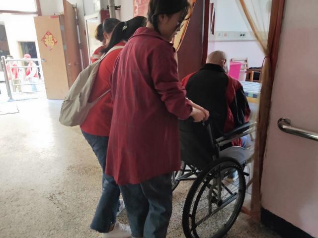 活动中,学生第三党支部全体党员身穿红色上衣,并于胸前佩戴党员徽章。大家分工合作,井然有序,耐心询问老人们的身体状况及生活需求,并帮助他们整理房间与打扫卫生等。