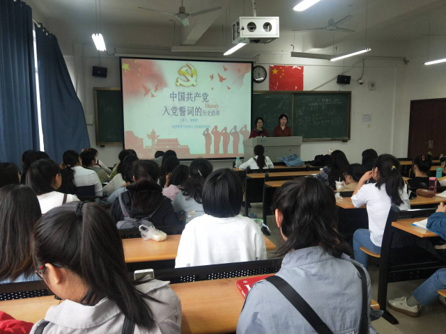 学生党员深入各个班级就入党誓词的内容及其发展进行了深刻的讲解,对五个不同时期的《入党誓词》进行分析比较。此外,学生党员还详细地介绍了成为中国共产党党员应具备的基本条件和加入中国共产党的程序与要求,有效地调动了学生们的入党积极性。