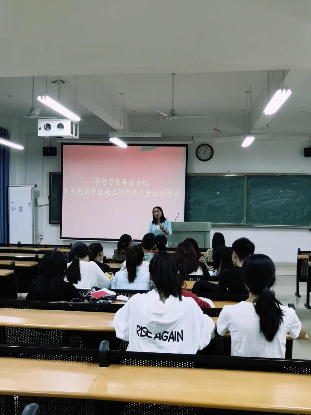 会上,学生第三党支部书记胡美萍老师向大家分享了“习近平总书记在庆祝新中国成立70周年大会上的讲话”的精髓与核心,并要求支部全体党员同学加强对主题教育的认真学习和深刻领会。接下来学生第三党支部全体党员依次上台分享自己的感悟并和大家一起讨论交流。