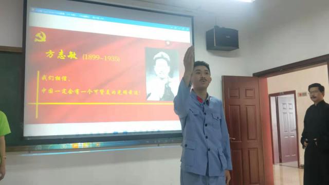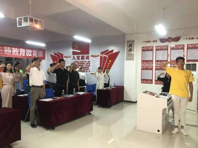 其后,主讲人支部书记李丽清,讲述了5个历史时期的中国共产党入党誓词的历史沿革,结合党史的教育使党员对入党誓词的有了更深入的了解。最后,全体党员还集体重温了入党誓词。李丽清的讲授条理清晰,理论严谨、思维深邃、内容丰富、实例鲜明、数据翔实,既有深厚的思想性、理论性、逻辑性又有现实的教育性、指导性,让党员深刻地体会到中国共产党人矢志不渝的坚定信念和奋斗历程,更加深刻地认识到开展“不忘初心、牢记使命”主题教育的重大历史和现实意义。
