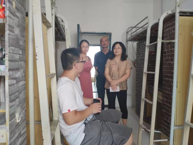 9月7日下午,党委书记詹凯、党委副书记陶表红、办公室主任聂虹、就业办主任胡芬芬及团委负责人肖瑶一行人深入走访新生宿舍,详细地了解新生的住宿和适应情况。