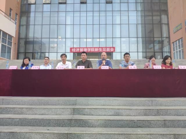 为帮助新生尽快适应大学的学习和生活,融入新集体,2019年9月8日早上7点,经济管理学院2019级新生见面会在逸夫楼前小广场成功召开。院党委书记詹凯、院长勒系琳、副书记陶表红、副院长吴国繁、教学办主任黄丽华、办公室主任聂虹、就业办主任胡芬芬、团委及学工办负责人肖瑶、教师代表刘斌、学生代表及2019级全体新生参加了此次会议,会议由党委副书记陶表红主持。