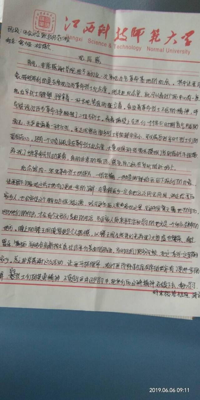 苏比热·艾合买提说,我们作为当代大学生,是祖国的人才和希望,应该要具有民族责任感,要把专业知识和科学知识学扎实,为以后出来服务社会。建设祖国做好准备。她还特别感谢学院领导和老师给我们参观机会 ,让我们爱国主义精神得到很大的提升,懂得更加珍惜现在的幸福生活、。