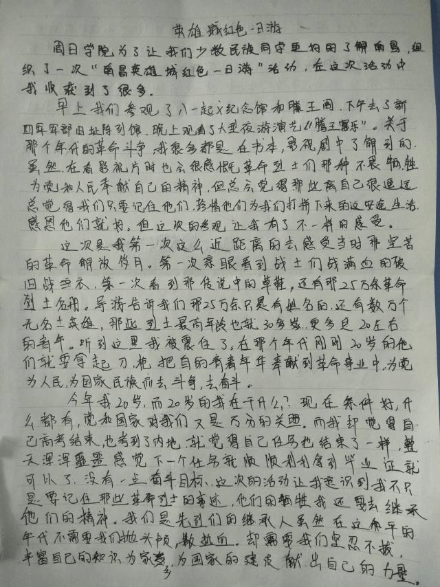 吐尔逊江说,学院的组织安排特别细心,不但参观了革命教育基地,还去了新疆和田人开的清真餐厅,又点了新疆特色饭菜,吃的饱饱的,感觉自己很幸福。我们边吃饭,边跟同学们聊天,过得很开心。在欣赏滕王宴乐时,我感觉很精彩,我以前没看过这样精彩的,这是第一次看,我觉得这一天过得很开心。
