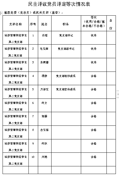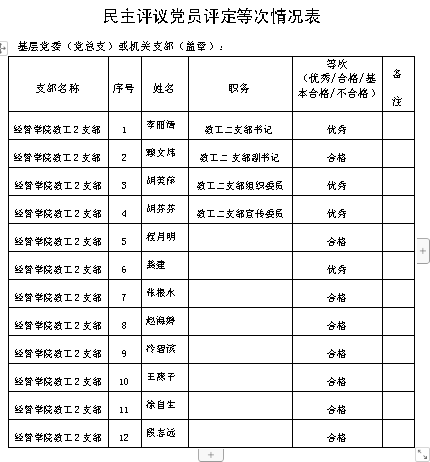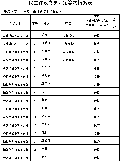 同时,各党支部还对所有党员进行了评议。学院处级党员干部参加了支部民主生活会,进行了批评与自我批评,以及民主评议党员(处级干部由学校统一考核,考核等级由学校组织部评定。)