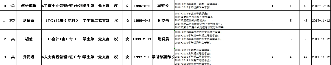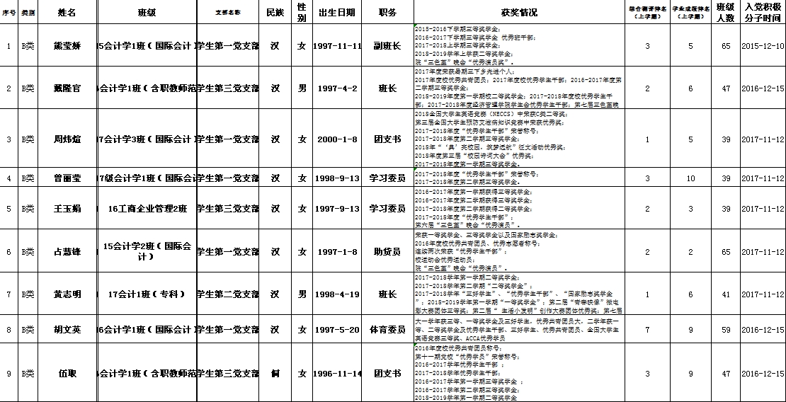 按照校党委组织部规定,依据学院党委《关于开展2019年上半年学生入党发展对象推荐的工作通知》的要求,经济管理学院启动2019年上半年学生入党发展对象推荐工作。经过班主任推荐、团委、学工办、教学办审核,3月26日,学生1、2、3支部召开支部大会讨论确定为熊莹娇等13位学生为入党发展对象。经学院党委同意,对熊莹娇等13位学生入党发展对象进行公示。如对公示内容有异议,可以通过公布的方式及时进行反映,学院党委会严格进行核实,并严肃处理。