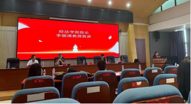 李丽清代表学院对法科新生的到来表示热烈欢迎。她强调,全体法科新生在校学习生活期间,一要坚定理想信念,珍惜师生情谊;二要热爱学习,勤奋努力;三要传承和弘扬中华文明,追求独善其身、兼济天下的境界。