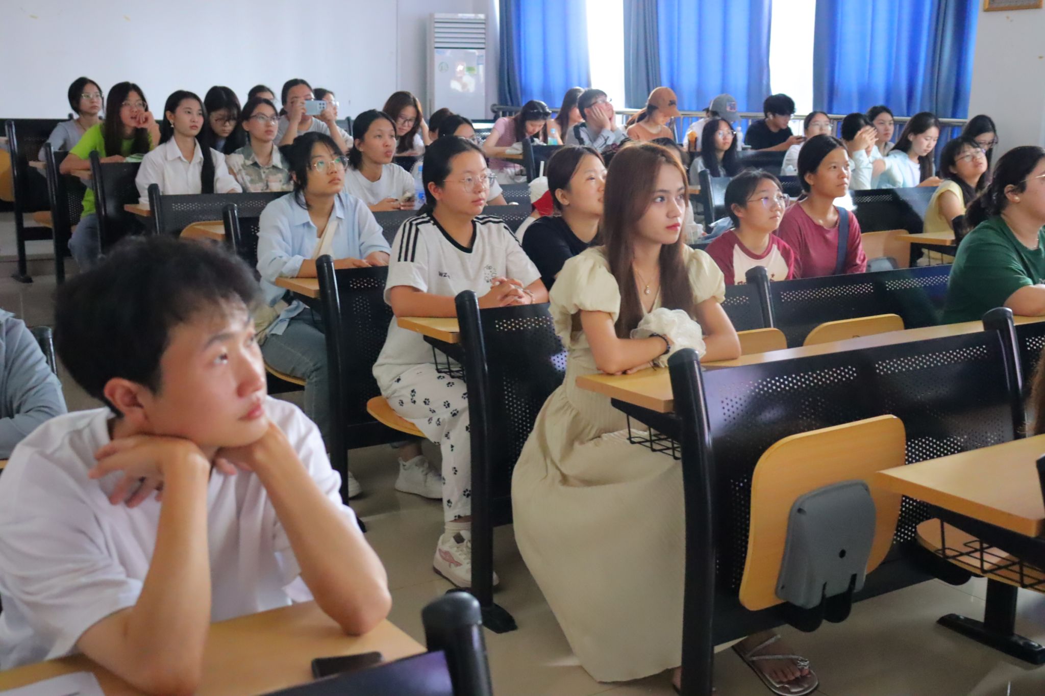 片尾字幕升起时,教室里仍满是震撼与感动。同学们纷纷表示,影片不仅带来视听冲击,更触动心灵。在随后的分享环节中,孜拉兰·买买提江同学踊跃发言,她动情地说:“作为大家庭中的一员,影片中展现的团结奋进、守望相助的精神让我倍感亲切和温暖。这让我更加坚定了将个人成长融入国家发展的信念。”