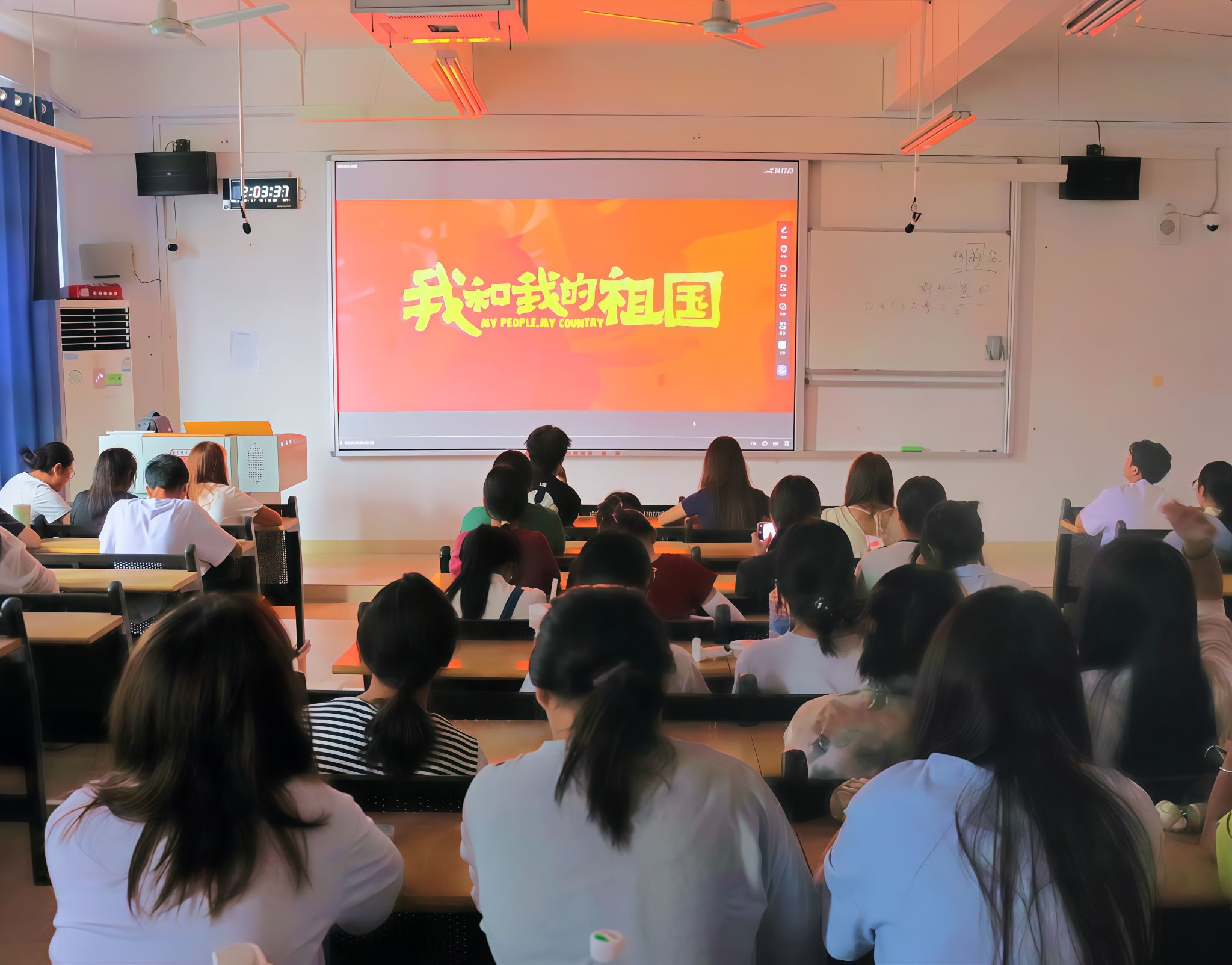 影片中七个故事分别取材自新中国成立以来的无数个历史性经典时刻——开国大典、第一颗原子弹爆炸、中国女排三连冠、香港回归、北京奥运会、神舟十一号飞船着陆、抗战70周年阅兵式。全篇以聚焦“小人物”、倒映“大时代”的细腻笔触,通过演绎了祖国七个大事件背后七组普通人的动人故事,娓娓道出祖国发展历程中的辉煌成就,展现全国人民在中国共产党领导下砥砺前行、开拓进取的时代精神。观影过程中,同学们全神贯注,深受触动。