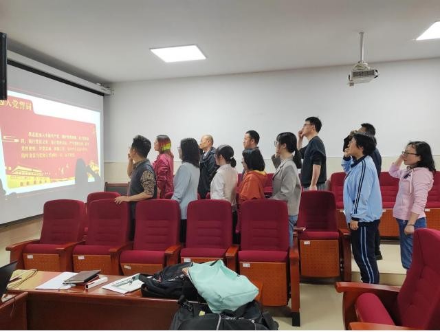 重温誓词活动中,全体党员集体肃立,庄严宣誓,誓言要不忘初心,牢记使命,为党和人民事业不懈奋斗。活动现场庄重肃穆,每个人都深受触动。