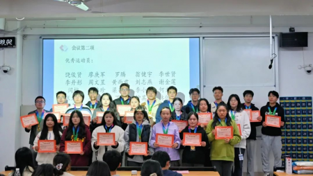 在第四十四届运动会表彰大会上,学生会主席团成员首先对我院在此次运动会取得团体总分第一名的傲人成绩表示祝贺,向全体默默付出的运动员、工作人员表达了感谢,随后依次为优秀教练、优秀运动员、先进个人、优秀工作人员颁奖,并留影纪念。