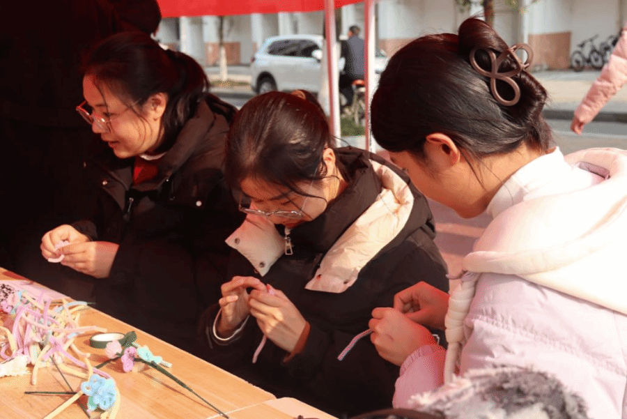 “巧手制造,润心育美”主题活动同期举行着,同学们围坐一处,学习制作扭扭棒花束。而当最后一片花瓣在他们的掌心定型时,这些手作绒花,早已凝驻了比春阳更暖的心意。本次活动为同学们提供了一个利用手工表达和祝福的平台,加深了彼此之间的联系。