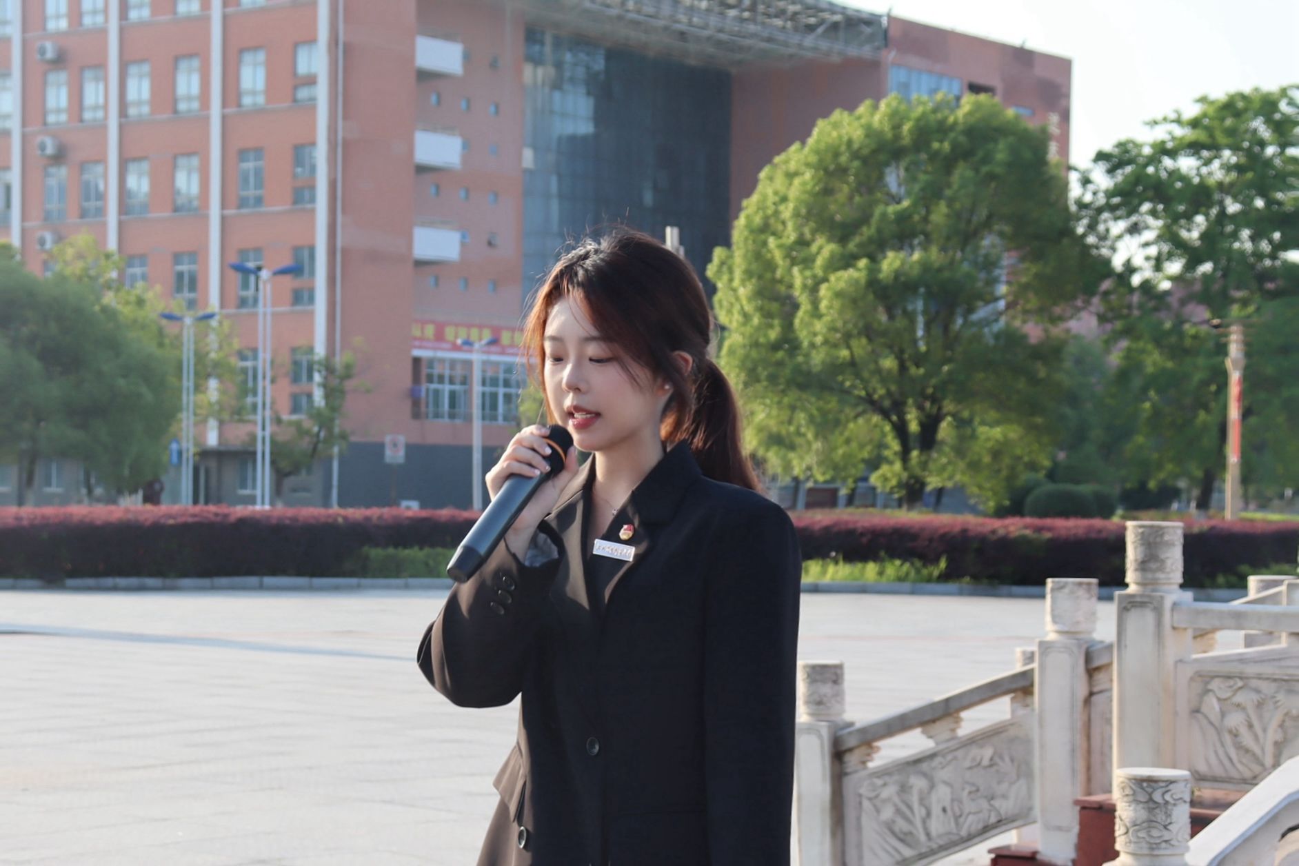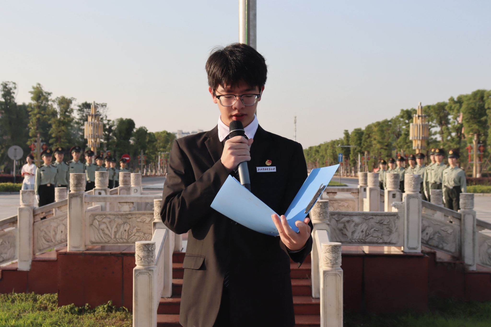 随后,学生代表李丹彤在国旗下讲话。她不仅强调作为新时代大学生要将青春热血投身社会实践,更号召全体同学要将个人理想融入复兴伟业,为实现中华民族伟大复兴的中国梦而努力奋斗。