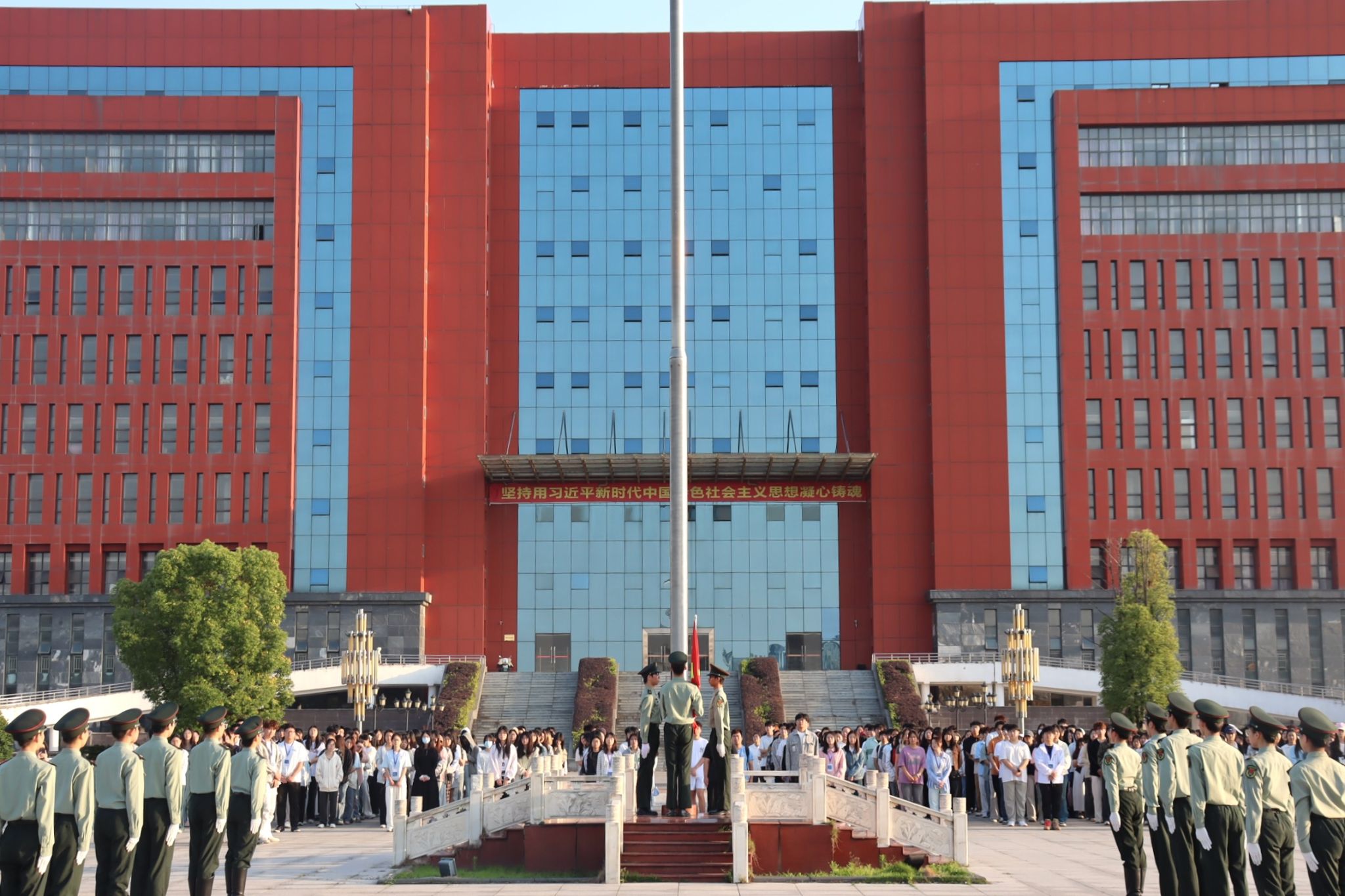 当激昂的《义勇军进行曲》奏响,五星红旗在晨光中缓缓升起。全体学生高唱国歌,目光紧紧跟随着国旗,心中满是对祖国的热爱与敬意。