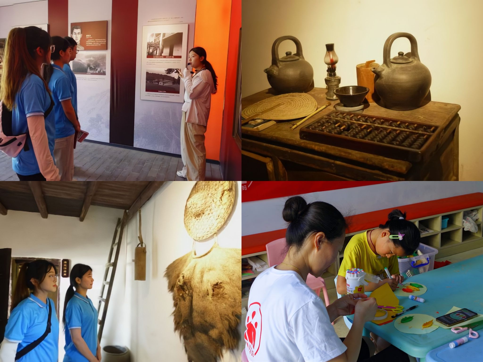 7月4日,实践队员们怀揣着先烈们用生命熔铸的红色精神,在罗塘乡红色旧址开展了一系列学习与传承活动。来到康克清故居,队员们驻足于见证了战时烽火的蓑衣前;聆听曾天宇烈士的英雄事迹,感悟革命精神。走进旧居旁的“童心港湾”,为孩子们讲述红色故事,教唱红色歌曲,诵读革命诗篇,让红色基因在代代相传中焕发蓬勃生机。