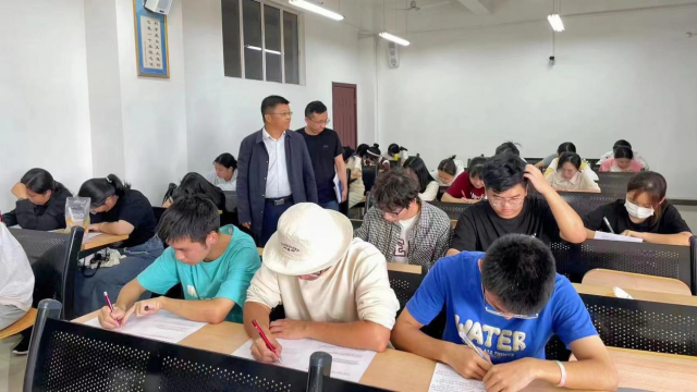 本次《学生手册》考试内容主要包括校纪校规、评优评先标准、贫困生认定标准以及基本安全等知识。考核帮助同学们熟悉各种评定准则,树立正确的价值观念与理想,帮助学生健康成长。考试现场秩序井然,同学们认真思考,有条不紊的书写答案,展示了我院学子良好的精神面貌。