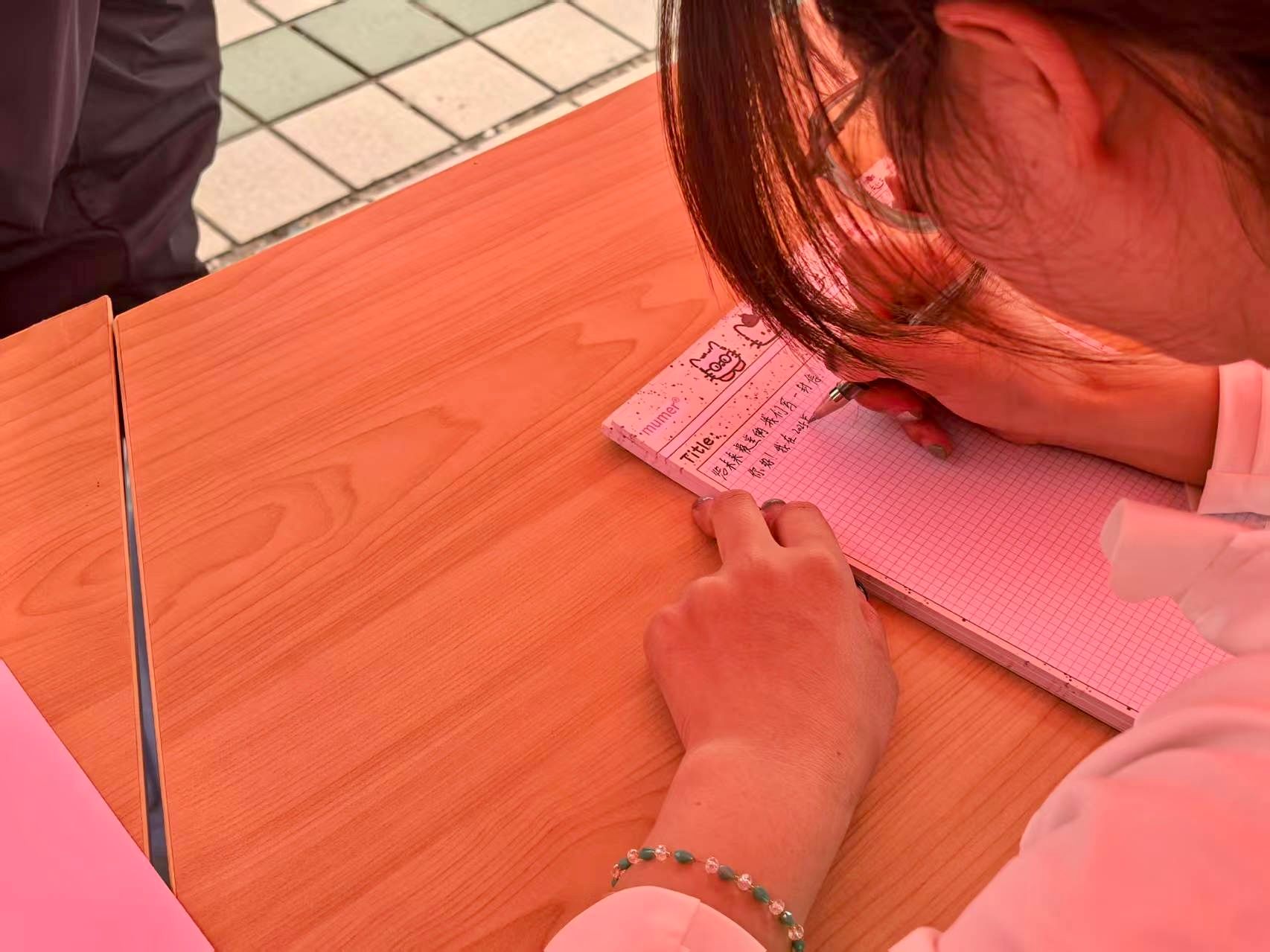活动过程中,现场设置了“Emoji猜心情”与“舒尔特方格挑战”两大环节。前者以图案解谜激发思维,后者用速度挑战考验专注。完成游戏挑战后,参与者领取特制信封与信纸,书写下“致未来寝室的我们”主题书信。在信里,同学们认真写下对室友的祝福与对未来自己的期许,真挚情感在文字间静静流淌。