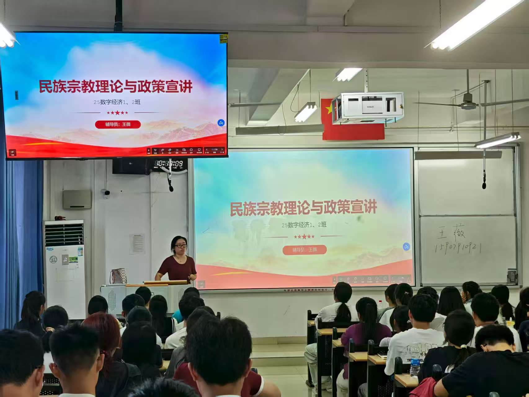 “铸牢中华民族共同体意识,是国家和民族的生命线。”各班辅导员通过剖析常见认识误区与潜在风险,帮助学生筑牢思想防线,并着重运用“石榴籽”这一生动比喻,形象阐释了我国各民族手足相亲、守望相助、休戚与共的血肉联系。此举不仅让“三个离不开”“五个认同”思想深深扎根,更使维护民族团结、尊重宗教信仰自由成为全体学生的共同追求,营造了包容和谐、积极向上的校园文化氛围。