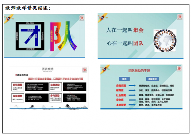 该门课程为职业方向选修课,教学内容为“团队激励的手段”,教师介绍了不同的激励手段以及以不同员工命名的团队激励方法,有案例,有思考,有讨论,有练习,有视频,内容丰富。