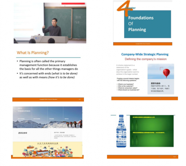 这门课程为双语教学课程,教师具有较强的语言能力,教学内容丰富详实,举例充分,板书清楚。“通过启发式教学和案例导入,开启学生思维并使之主动追求管理智慧,积极投身于各种管理实践活动中”的课程目标达成度较高。教师组织教学,启发式教学和案例教学法使用恰当,课堂教学气氛热烈,学生参与度高。