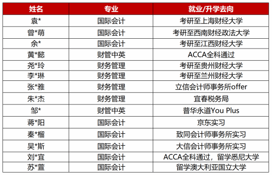 3、ACCA 实验班自开设以来,为国内外知名企业及高校输送了多名财会人才。
