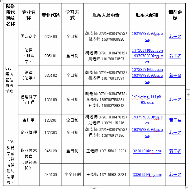3.凡有意向调剂者,可电话联系,将简历(含学习和工作经历、考研分数)以电子邮件形式发至相关专业联系人的邮箱(注:该邮箱只作为接收调剂学生基本信息的联系方式,不承诺任何内容)。