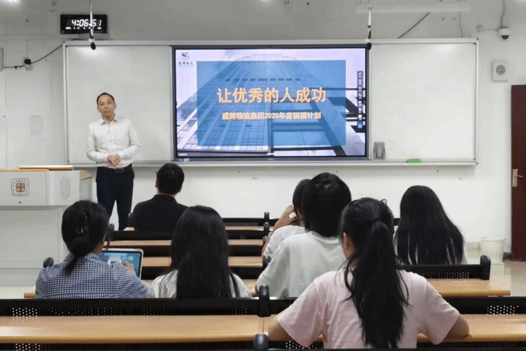 在招聘会现场,盛辉物流集团负责人对招聘管培生岗位、任职要求、薪资福利等信息进行了详细地介绍。随后,集团负责人和学生们进行了深入交流,耐心解答了学生们关于求职盛辉物流集团的相关问题。