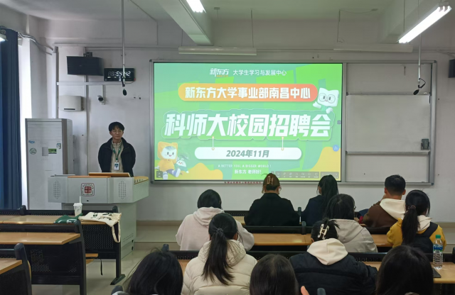 为增加我院学生就业岗位供给,拓宽我院学生就业渠道,英国威廉集团联合新东方于2024年11月29日在逸夫楼Y210举办了新东方校园招聘会,众多学生到场参加。