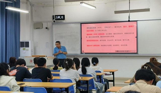 宣讲会中,张金艳老师首先对广东外语外贸大学发展历程进行介绍。随后,从专业型硕士研究生、学术型硕士研究生以及博士研究生三个方向的招生内容详细说明。会议最后,张金艳老师对我院学生提出的问题进行逐一解答,并表达了对学子们的殷切希望和美好祝愿。