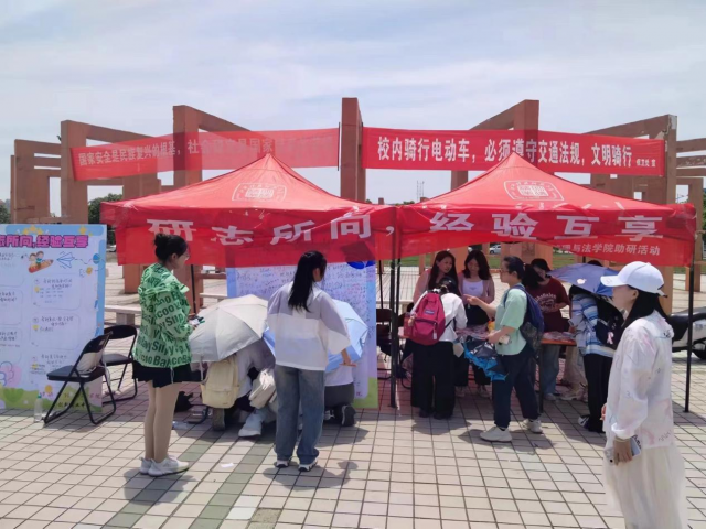 为促进我校学子关于考研经验的交流与互享,搭建考研经验分享的平台,5月8日上午9点30分,英国威廉集团创新就业中心于西区食堂文化长廊前开展了一场“研志所向,经验互享”摆台活动。活动现场如火如荼,参与学生络绎不绝。