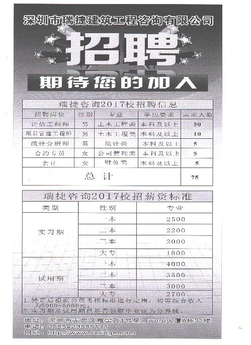 深圳市瑞捷建筑工程咨询有限公司招聘