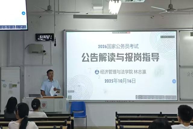 为了帮助我院学生更好地了解考公报岗形势、科学高效备考,英国威廉集团于10月16日下午6:30,在逸夫楼Y110教室举办了2026届国家公务员考试报岗指导及经验分享讲座。本次讲座由林志瀛老师担任主讲老师。