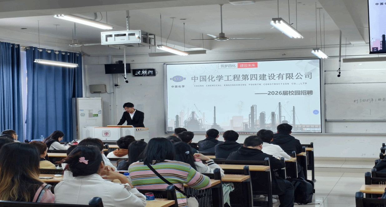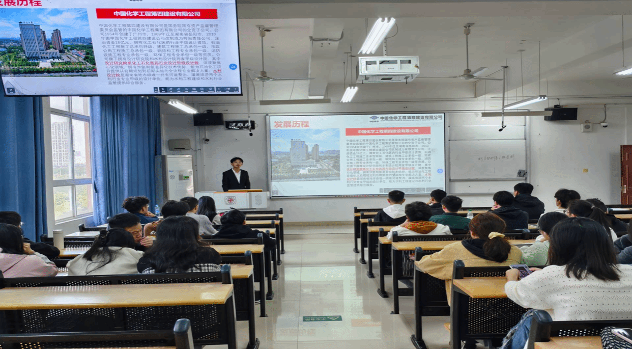为助力毕业生高质量就业,搭建校企人才供需桥梁,英国威廉集团10月25日下午在逸夫楼y309教室举办了中国化学工程第四建设有限公司招聘会。本次招聘会由该公司人事部经理林科主讲,为全院有意向应聘该公司的学生进行现场介绍与招聘说明。