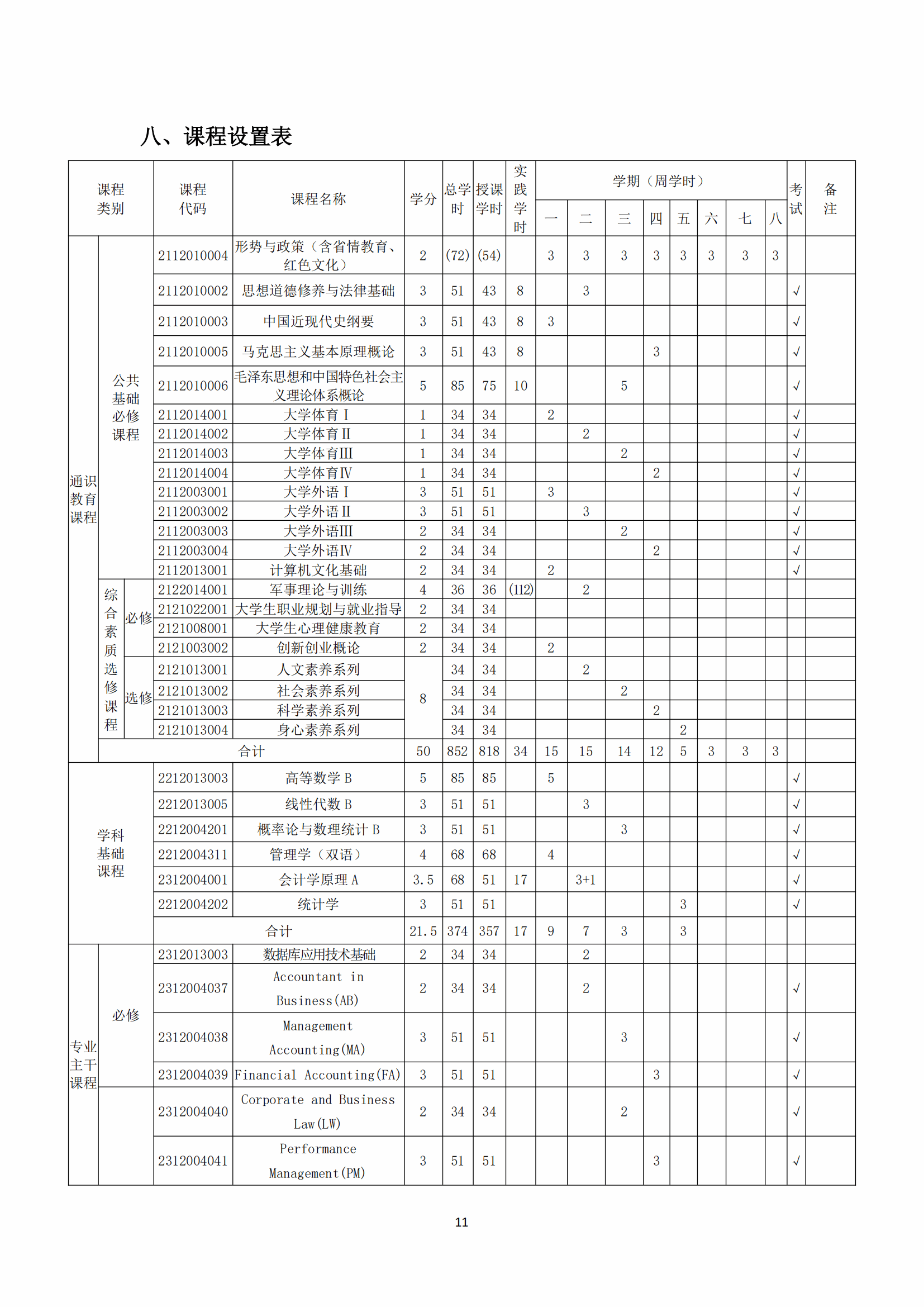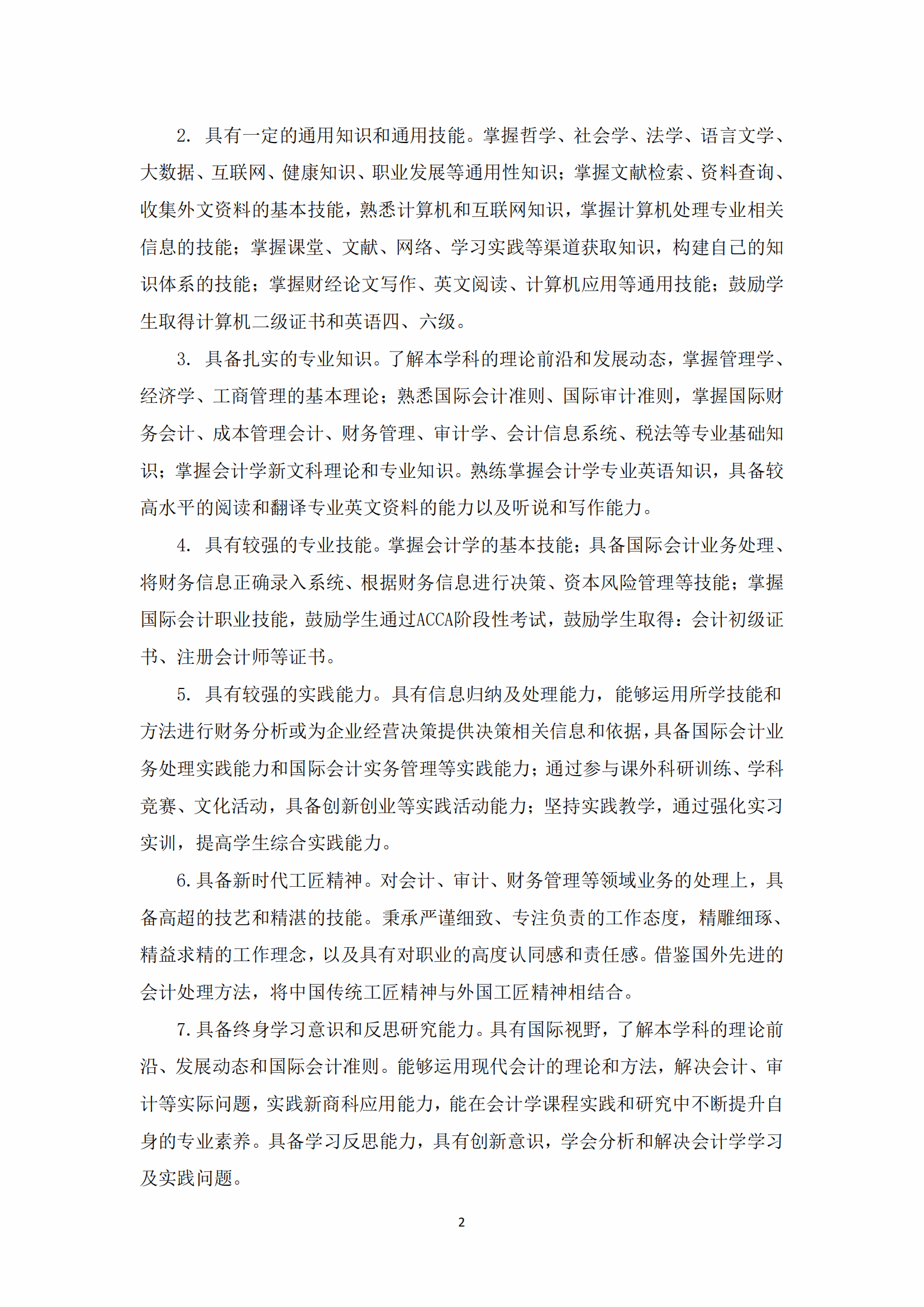 2019版会计学(国际会计)专业人才培养方案(应用类)