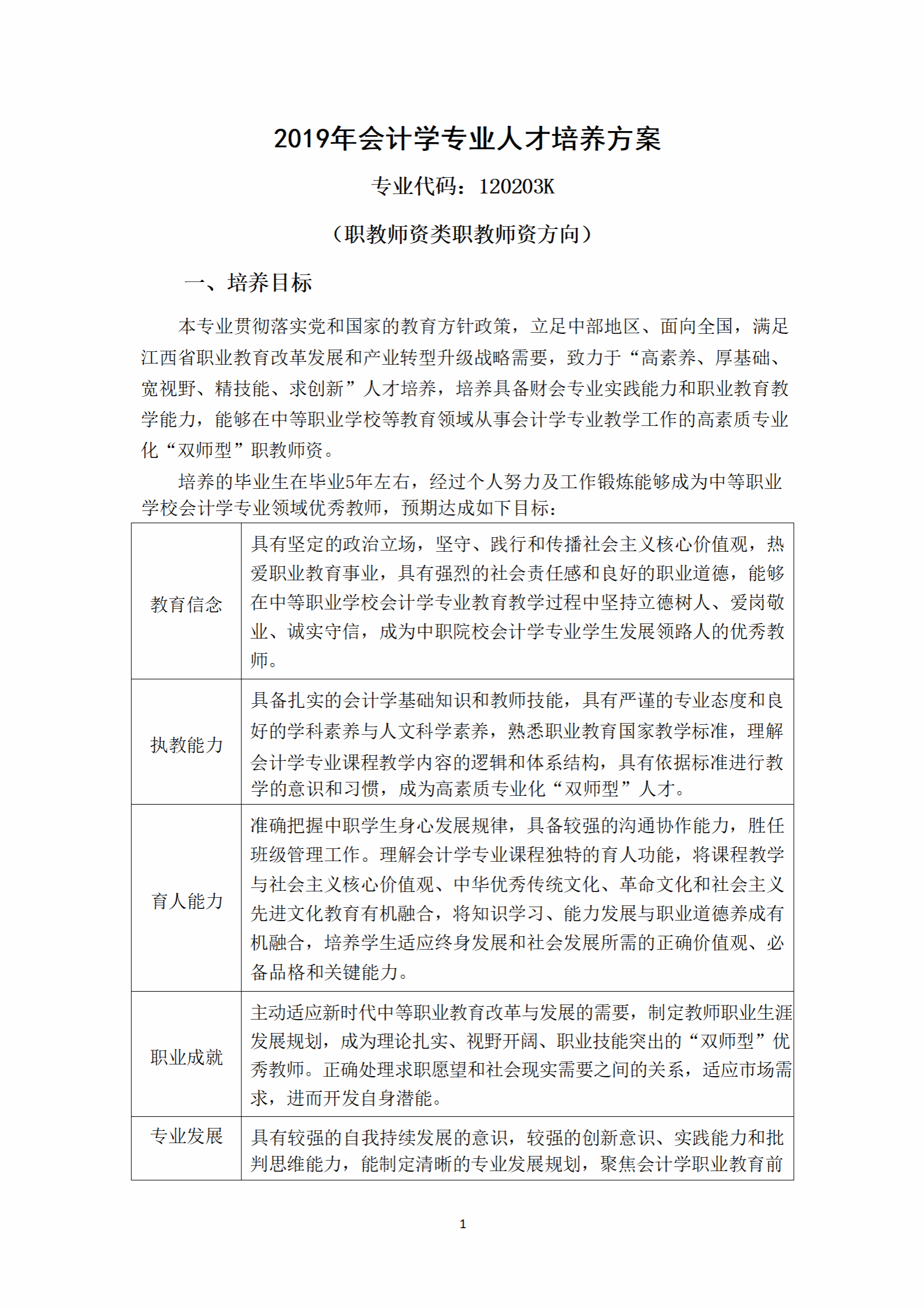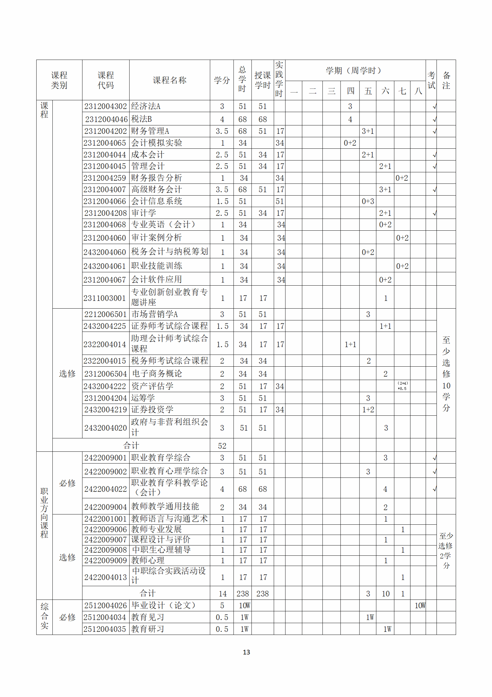 2019版会计学专业人才培养方案(职教师资类职教师资方向)