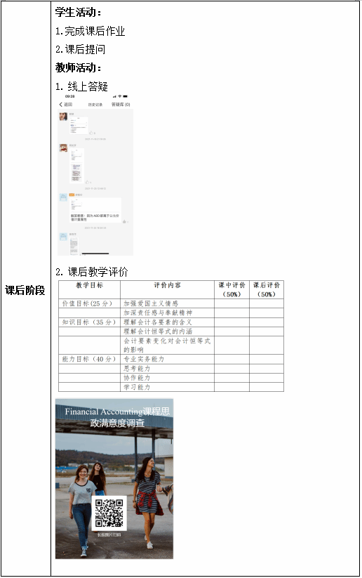 1.课程内容:《Financial Accouting》(双语课,简称FA)是依据国际财务报告准则IFRS等相关会计规范,主要研究财务会计的概念框架(或理论体系) 和基本方法,以及财务会计要素确认、计量、记录及报告的程序与方法。