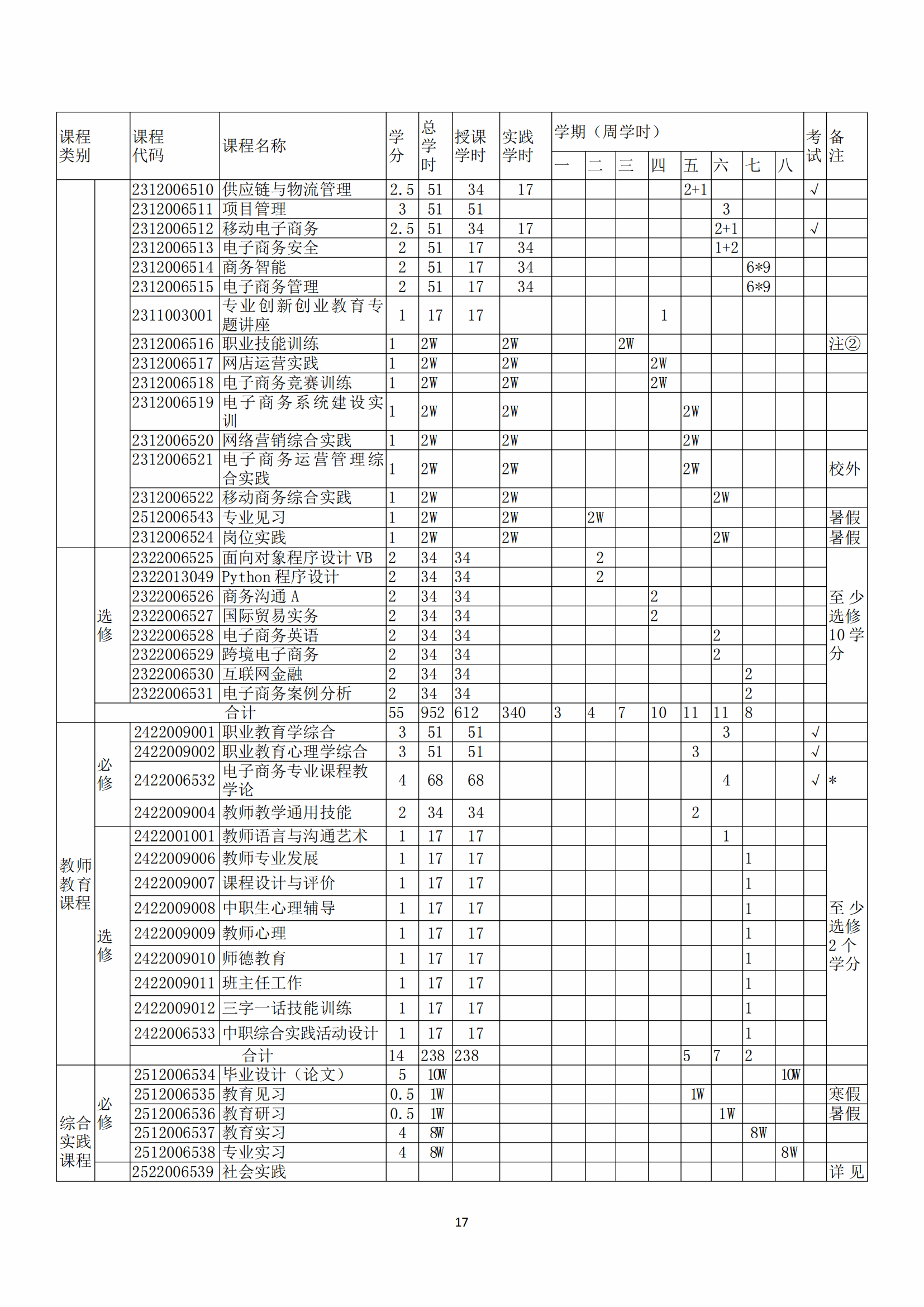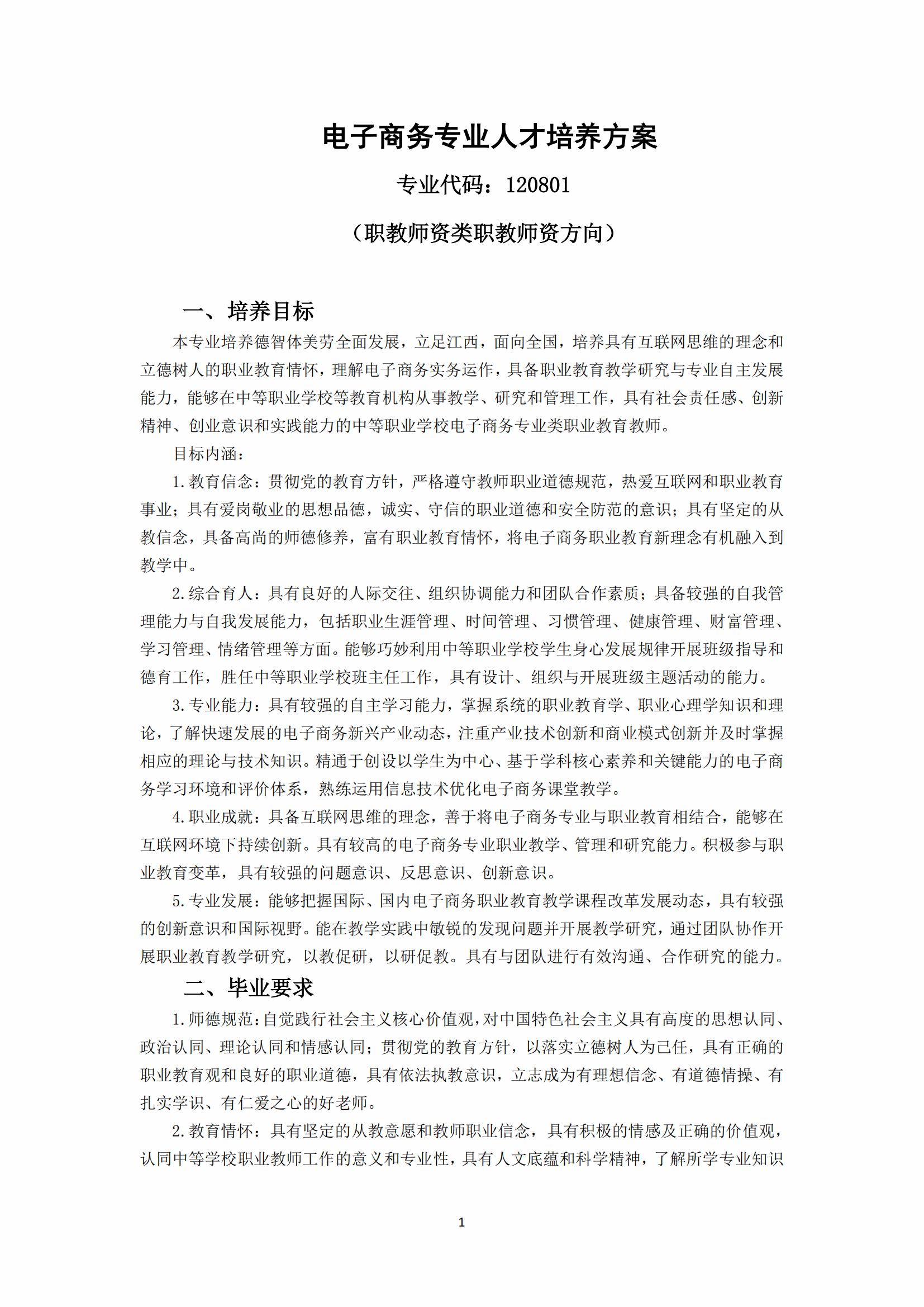 2019版电子商务专业人才培养方案(职教师资类职教师资方向)