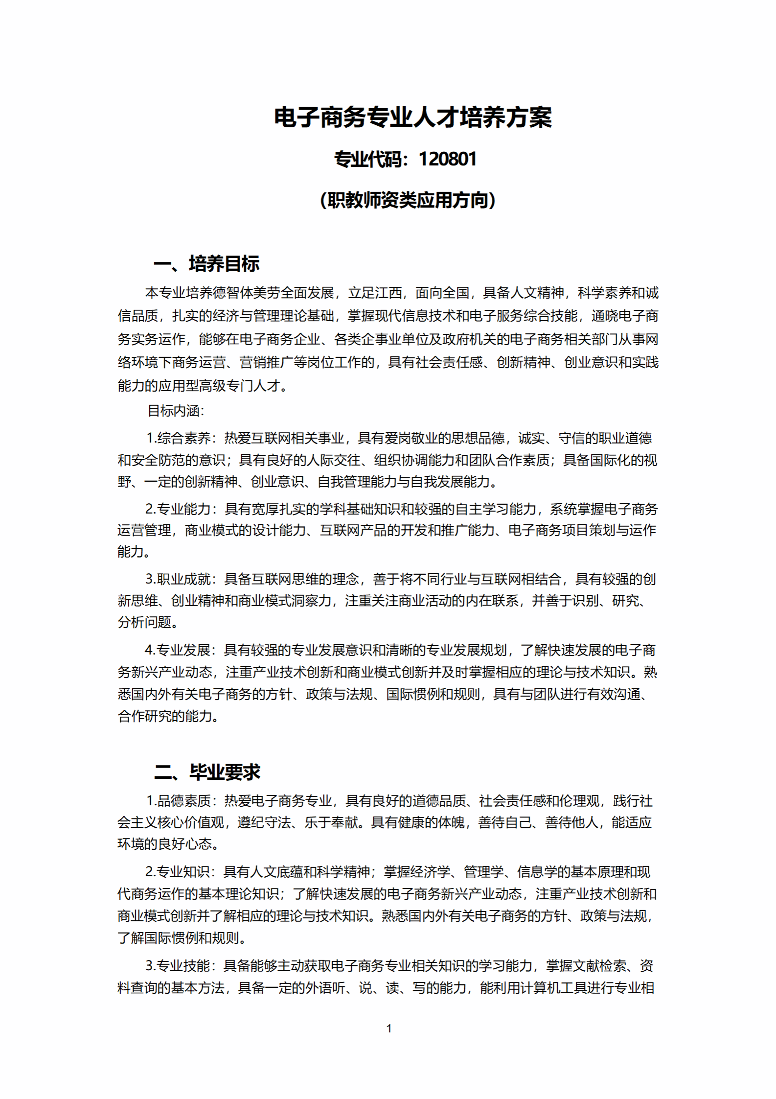 2019版电子商务专业人才培养方案(职教应用职教师资类应用方向)
