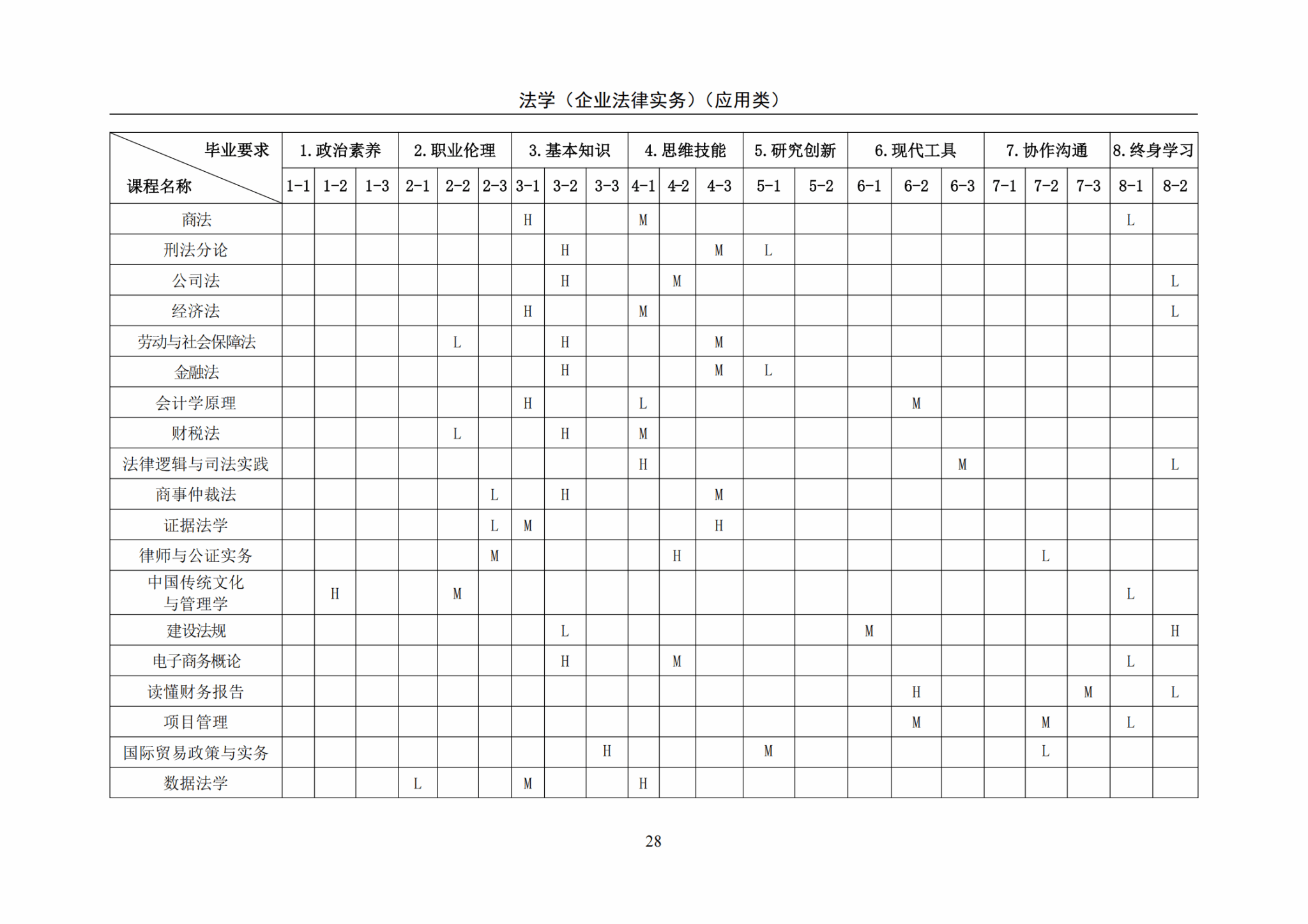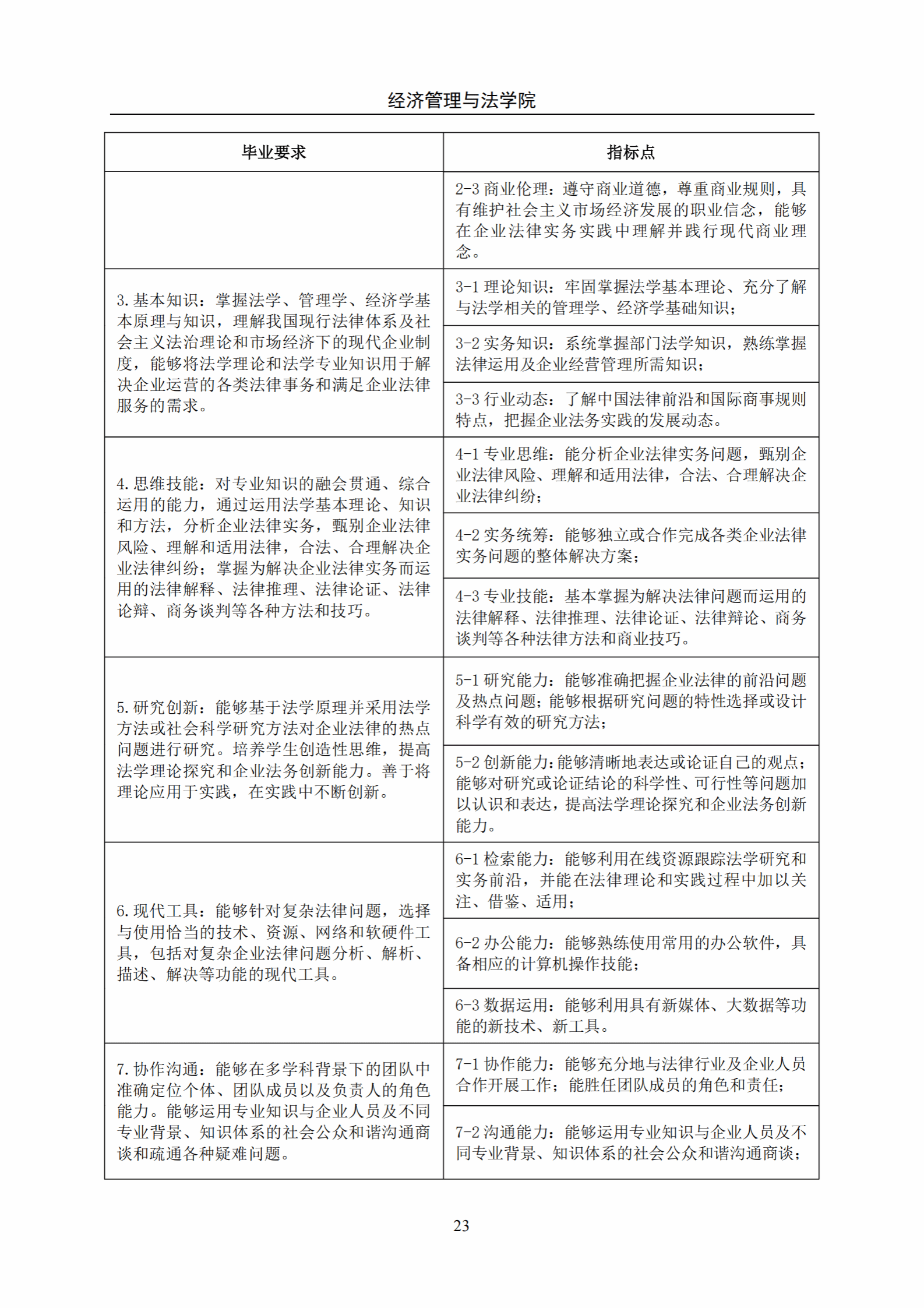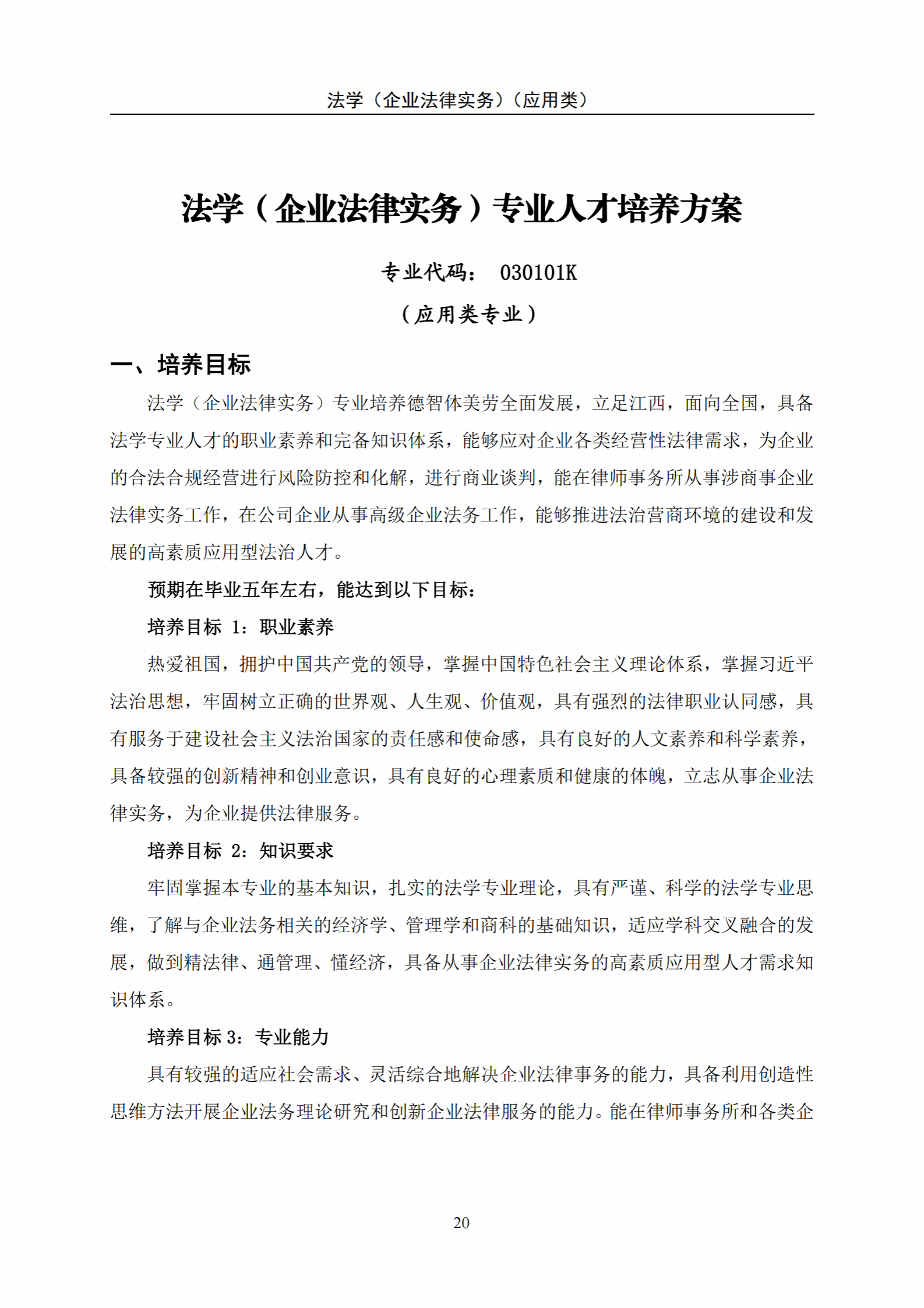 2023版法学(企业法律实务)(应用类)人才培养方案