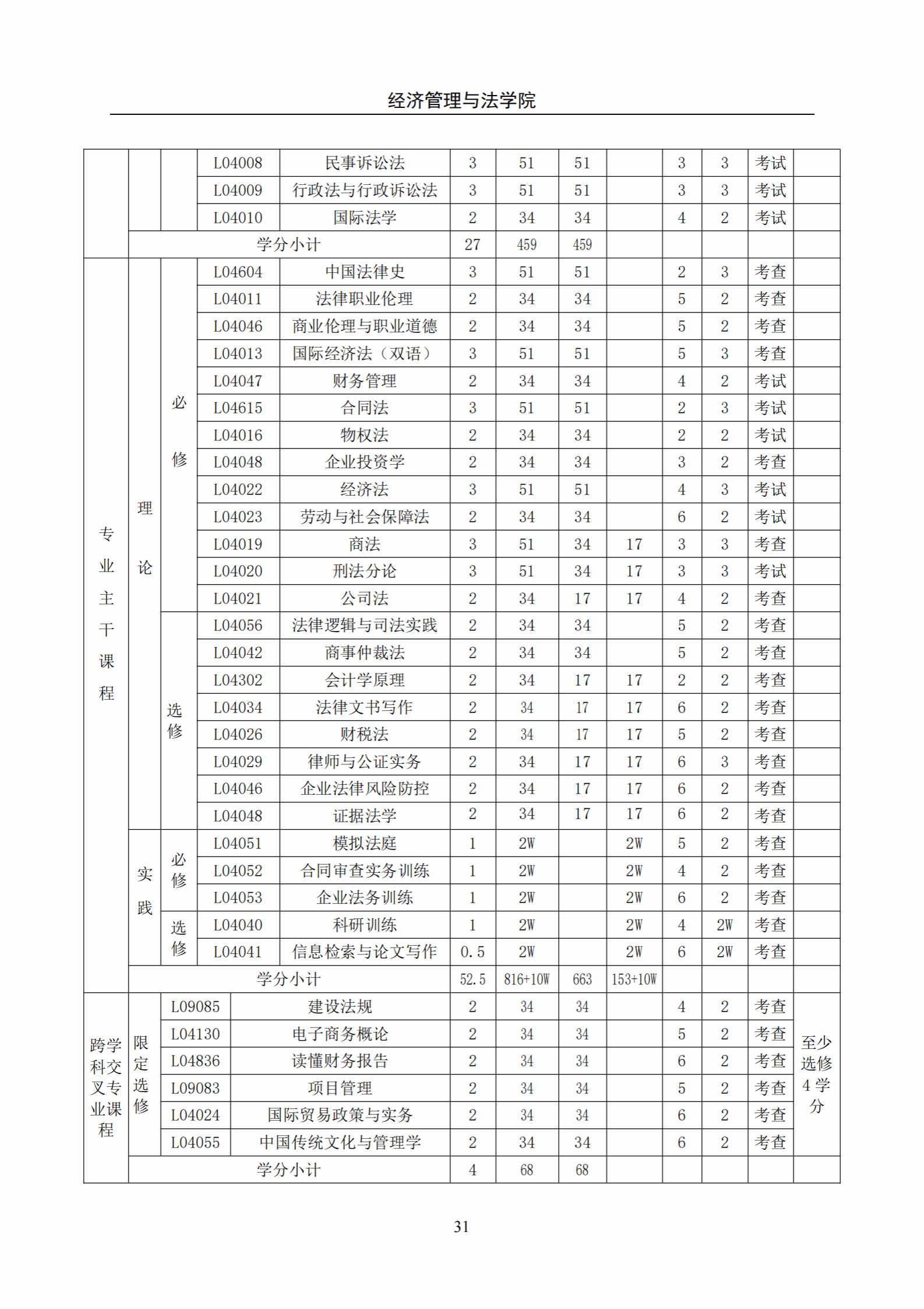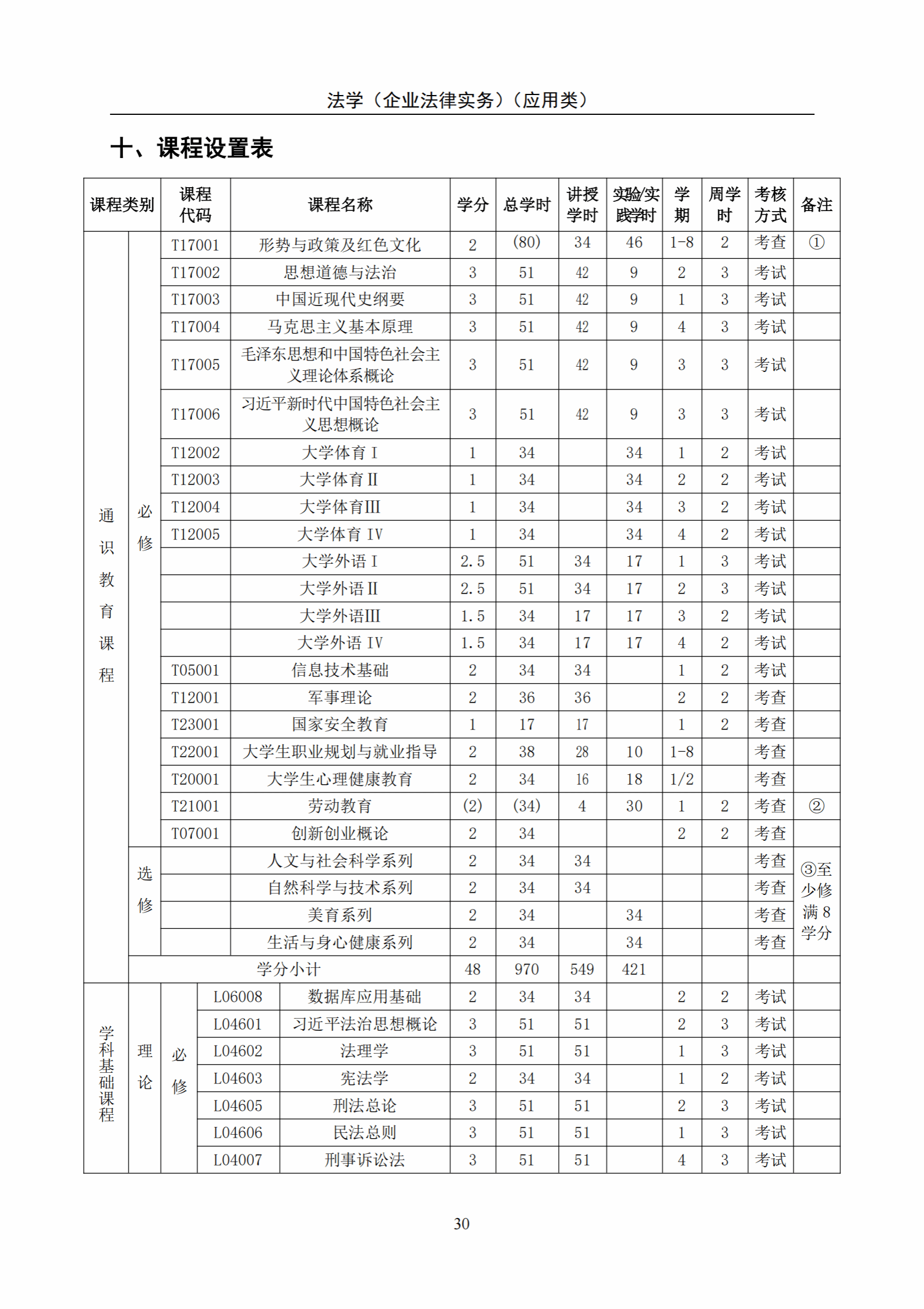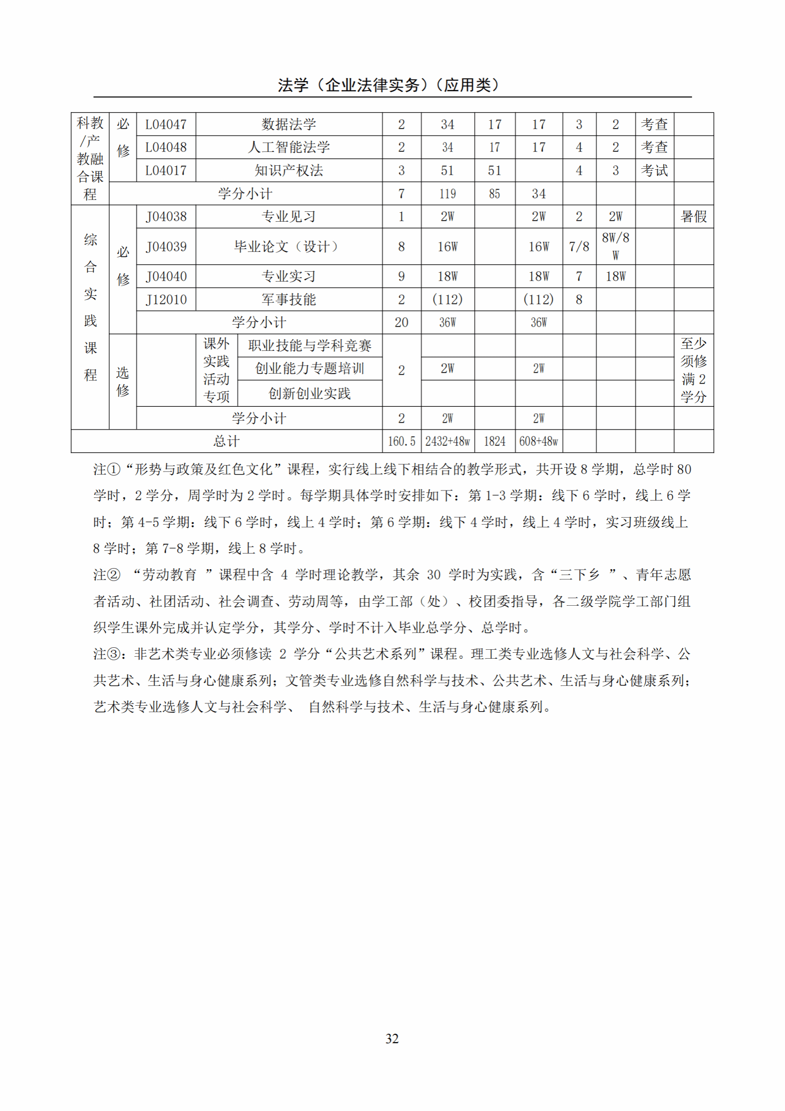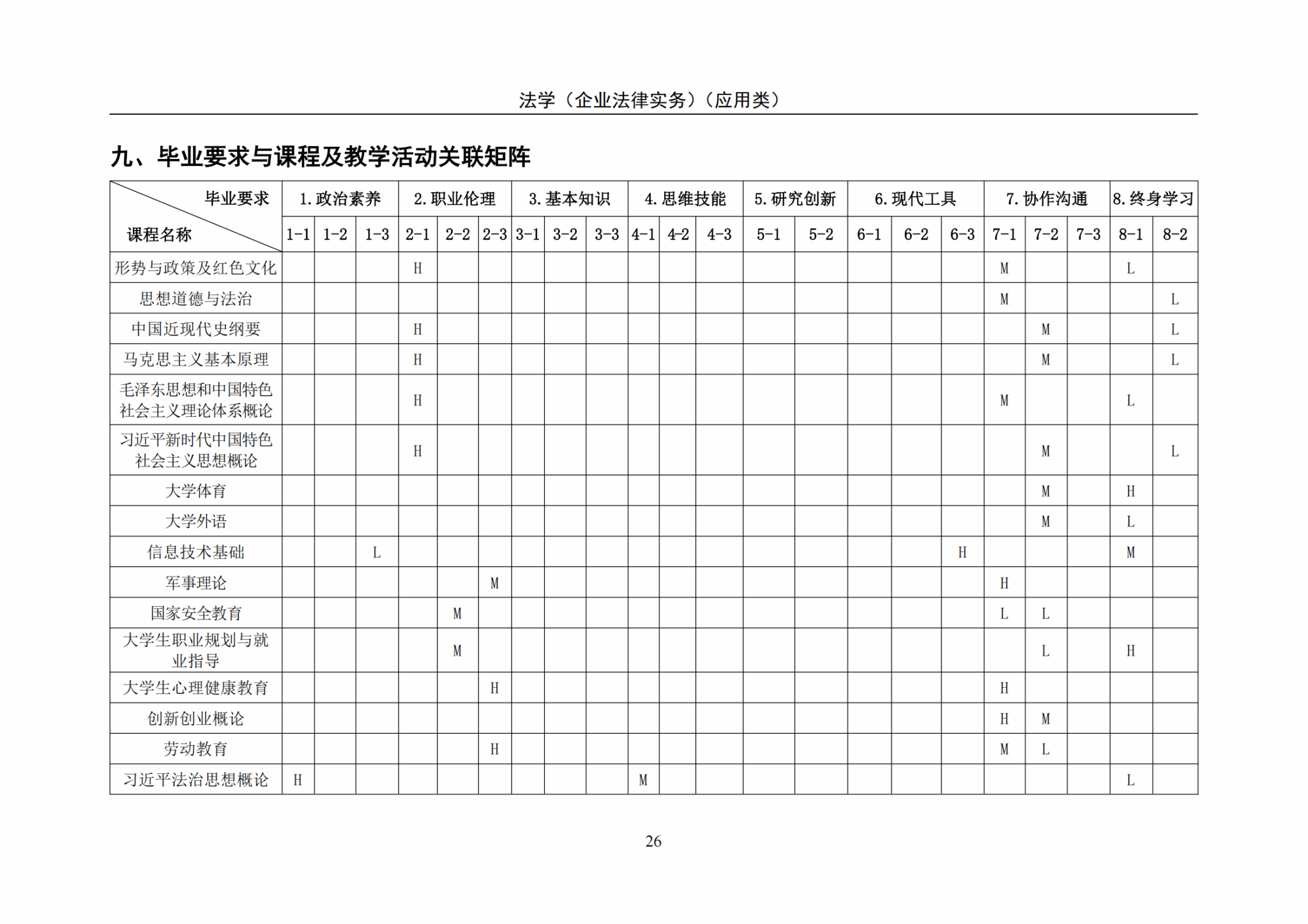 2023版法学(企业法律实务)(应用类)人才培养方案