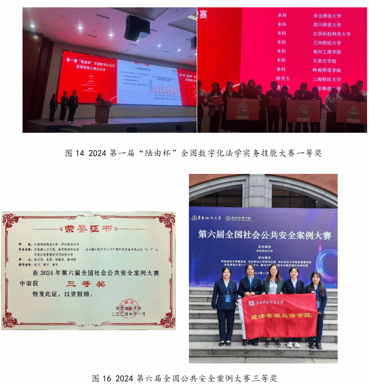 5.“以赛促学”注重学生能力培养。近年来,法学专业师生积极改变思维,努力实践探索,组织参加各类学科竞赛。近年来在校本科生,研究生参加各类比赛获省级以上奖励(代表性成果)40 余项。