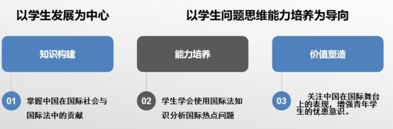 (3)价值目标:第一,学生使用马克思主义历史唯物主义和辩证唯物主义学习国际法制度的同时,培养学生形成正确的人生观、价值观,弘扬社会主义核心价值观。第二,厚植爱国主义情怀,让学生了解中国在国际规则制定、参与中的作用,通过案例体现的中国力量、中国精神,向学生展示中国的大国担当,提高学生的爱国主义情怀。第三,以时政热点引导学生关注时事、关注中国在国际舞台上的表现,增强青年学生的忧患意识。