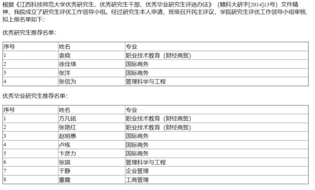 根据《威廉williamhill优秀研究生、优秀研究生干部、优秀毕业研究生评选办法》(赣科大研字[2014]13号)文件精神,我院成立...